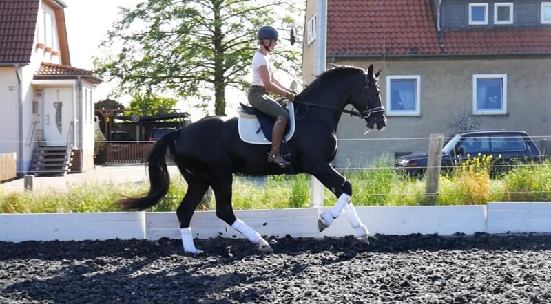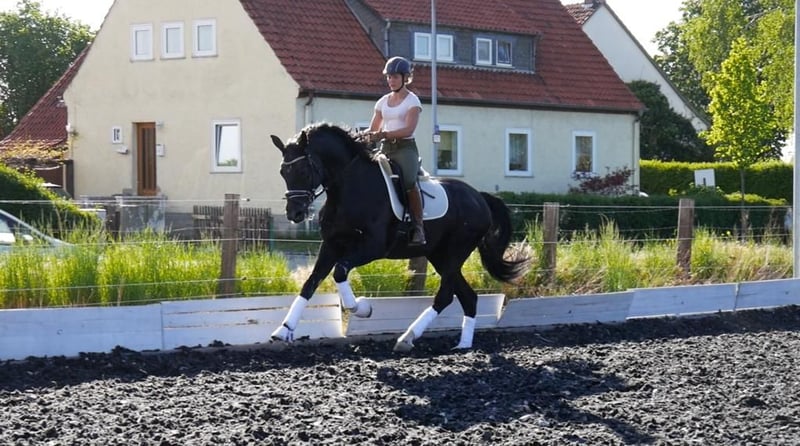 Baju B (Brahmshofs Baju) steht auch dieses Jahr wieder Stuten im Natursprung oder TG (über freese and breed) zur Verfügung. WFFS frei, ECVM frei, PSSM1 frei, topp gesund. Gekört für Oldenburg besticht die Nachzucht durch überaus qualitätsvolle, korrekte Fohlen. Seinen herausragenden Schritt, den traumhaften Galopp und das hervorragend gewinkelte, tragfähige Hinterbein gibt er seinen Fohlen immer mit. Bei kleineren Stuten wurden die Fohlen bisher einige Zentimeter größer als die Mütter und bei sehr großen Müttern eher ein bißchen kleiner. Die Nachkommen zeichnen sich durch Rittigkeit, sehr gute Grundgangarten und Gesundheit aus.