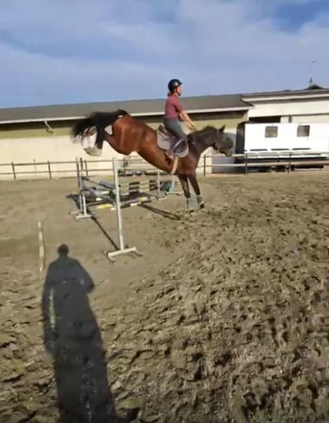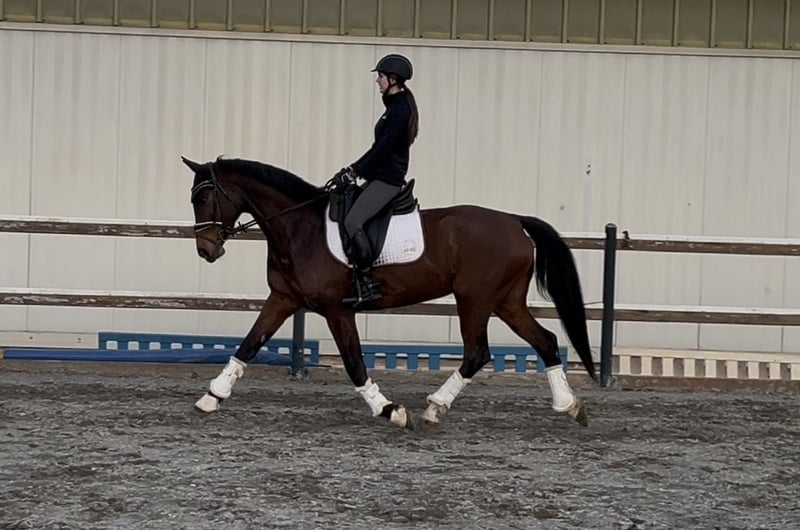 She is named Susi. Born in 2015, she is approximately 16.2 hh Hannoverian mare by Stalypso out of Espri. Susi is a true all-rounder. She demonstrates three excellent basic gaits, as well as great quality and bravery over fences. She has potential for the advanced level in both jumping and dressage. In dressage work, Susi is a real eye-catcher. Motivated, eager, and easy to ride. She also shows potential in lateral work and flying changes. The extended trot is already established. In jumping, Susi is a brave horse that approaches fences confidently. She has excellent manners, with plenty of talent and a high level of caution. She has competition experience up to: - Cross-country test A** - Show jumping test A** Placed in both dressage and jumping classes at A level, and victorious in A-class show jumping. Under the rider, the mare is generally well-behaved, forgiving of many mistakes, and eager to please. However, she can sometimes be startled and make a small jump sideways, so she may not be suitable for absolute beginners. She also requires regular work. In handling, Susi is a dream and very uncomplicated in everyday life. She loves being groomed and stroked extensively. Additionally, she is completely shoe- and loading-trustworthy. If you are looking for a high-quality, motivated horse with open doors in all disciplines, Susi is the right choice.