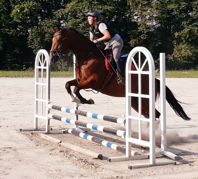 Elegante - Verbandsprämienstute - für alle Bereiche des Pferdesports geeignet. Ein Pferd mit sehr guten GGA, schick, mag immer gefallen und mit genügend Go ausgestattet. Geschwister aus der selben Mutter sind im Springsport bis 150 cm unterwegs. Meta 31 150 cm My Girl 150 cm Luke Lele 120 cm Miramis 110cm Aus der Schwester Feline kommt der Wallach Colorado v. Cornet Obolensky, der ebenfalls 150 cm unterwegs ist. Vollbruder in Dressur und Springprüfungen bis 135 cm gelistet. Kann als Freizeitpferd sowie Sportpferd geritten werden, nicht für reine Anfänger geeignet.Sehr leicht in der Hand und Anlehnung. Kein Pferd für Harte ziehende Hände! Hatte bereits ein sehr gutes prämiertes Fohlen von Kanthago de Revell , was bei uns aufwächst. Derzeit wird die Stute in Dressur - Springen und als Geländepferd VS weiter ausgebildet. Aktuell springen wir sie in der Springstunde einen kleinen E bis A Parcour sicher,mit viel Luft nach oben.Wasser gar kein Problem! Springablauf mit sehr schnellen Reflexen im Voderbein.Nicht kuckig... Stute könnte auch tragend gemacht werden in der Saison 2026 mit Con Spirit (Cornet Obolensky - Acorado) Oder Eliot D (Emerald - Chacco Blue )