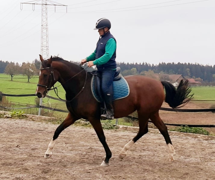 Elegant - Premium mare - suitable for all areas of equestrian sports. A horse with very good basic gaits, stylish, eager to please, and equipped with enough go. Siblings from the same mother are competing in show jumping up to 150 cm. Meta 31 150 cm My Girl 150 cm Luke Lele 120 cm Miramis 110 cm From the sister Feline comes the gelding Colorado by Cornet Obolensky, who is also competing at 150 cm. Full brother listed in dressage and show jumping competitions. Can be ridden as a leisure horse as well as a sport horse, but not suitable for beginners. Very light in the hand and in contact. Not a horse for strong pulling hands! Has already had a very good premium foal by Kanthago de Revell, which is being raised with us. In the meantime, we have started light work and gymnastics in jumping and cross-country. See video, as well as the suitability tested with riding beginners in the round pen. She does everything with flying colors!