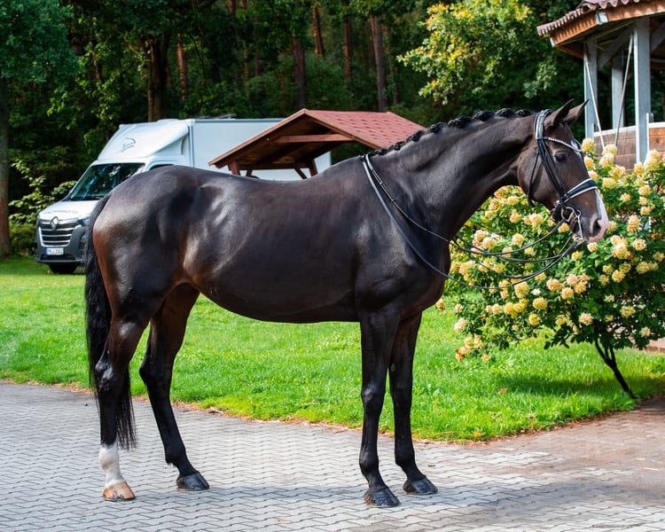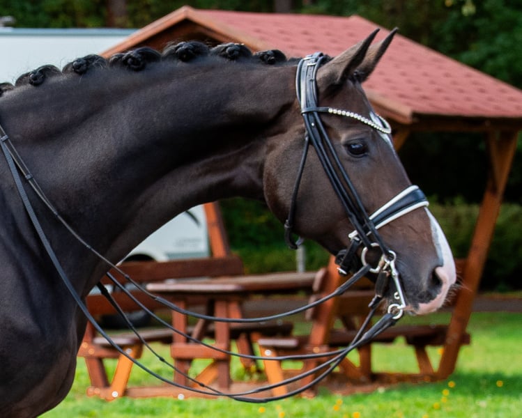 Don Schurfes Märchen est une jument hannoverienne impressionnante, dotée d’un excellent potentiel en dressage et d’une grande facilité de conduite, rare à trouver. Fille directe de l’exceptionnel reproducteur Don Schufro, issue d’une mère par Lauries Crusador xx, elle combine qualité de mouvement, volonté de performance et un tempérament clair à un niveau d’élite. La jument est actuellement régulièrement classée en épreuve de niveau M et sera préparée de manière ciblée pour ses premières sorties en Grand Prix lors de la prochaine saison hivernale. Elle maîtrise toutes les figures avec assurance et affiche constamment une attitude de travail fiable. Elle se distingue par une légère et constante attitude d’auto-contre-épaule et peut être montée en toute sécurité et avec finesse même par des amateurs. Au quotidien, elle se montre parfaitement équilibrée et nerveusement solide, que ce soit en compétition, sur le terrain d’entraînement, en extérieur ou lors d’exercices de gymnastique sur des barres. Elle connaît le paddock et la pâture, et reste toujours amicale et facile à gérer. Un véritable cheval de rêve pour les cavaliers recherchant qualité, caractère et facilité de conduite réunis en un seul animal.