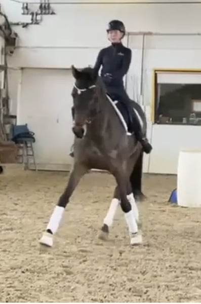 This dressage mare is directly from the breeder and is for sale with us. She is trained up to the S class, very comfortable to sit on, and can be ridden by anyone.
