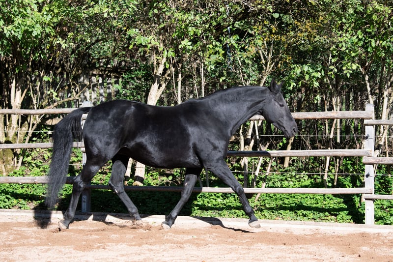Elegante Hannoveranerstute sucht neue Aufgabe. 13 j. Rappe oh. Abz., 1.60 Stm. v. Londontime x Don Crusador. Sehr gute Grundgangarten, bildhübsch und ausdrucksvoll, sensibel und feinfühlig daher nicht für Anfänger geeignet. Bei stärkerem Wind wird sie ängstlich. Auch für die Zucht interessant. Hufschmied und Tierarzt kein Problem. Barhuf - kennt Hufschuhe. Sie liebt Bodenarbeit/ Freiarbeit und gemütliche Ausritte zu zweit od. auch alleine. Ich wünsche mir für sie einen einfühlsamen Umgang um dadurch ihr Vertrauen zu gewinnen. Sie wird nur abgegeben wenn die Chemie stimmt. Ideal wäre ein Aktivstall oder ähnliches. VB 7300 € Tel. 0160 97023965