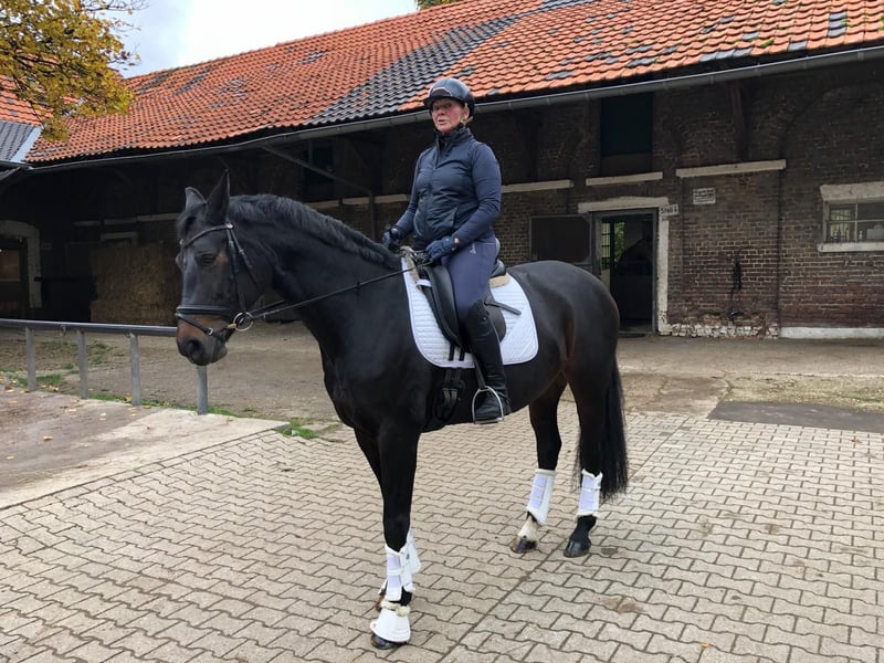 Wir verkaufen unsere "Lou", eine besonders hübsche 12 jährige KWPN-Stute von Conaisseur, aus einer Stute von San Remo mit einem Stockmaß von etwa 1,62m. Lou ist eine überaus charmante und umgängliche Stute, die aufgrund ihres tollen Charakters ein neues Schulpferd bei uns werden sollte. Obwohl sie sehr brav ist, scheint sie doch eher kein Pferd zu sein, das für einen ständigen Reiterwechsel und kleinere Kinder oder Anfänger geeignet ist. Daher möchten wir sie in private Hände abgeben. Lou ist dressurmäßig fast gut dem Stand einer A-Dressur, im Springen wurde sie nicht gefördert. Leider hat Lou ein leichtes Sommerekzem, das allerdings mit einer Ekzmerdecke und Pflege gut in den Griff zu bekommen ist. Möchten Sie Lou gerne kennenlernen? Gerne können Sie einen Besichtigungstermin vereinbaren. Tel: Frau Melanie Cremer 0172/9728351 oder Frau Elfi Paule 0177/3515387 Zur Vermeidung von Reittourismus und im Sinne von Lou berechnen wir für das Probereiten 25,- €, die Sie selbstverständlich bei Kauf angerechnet bekommen.