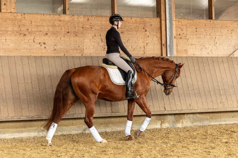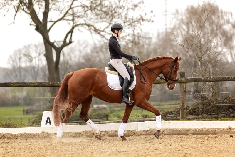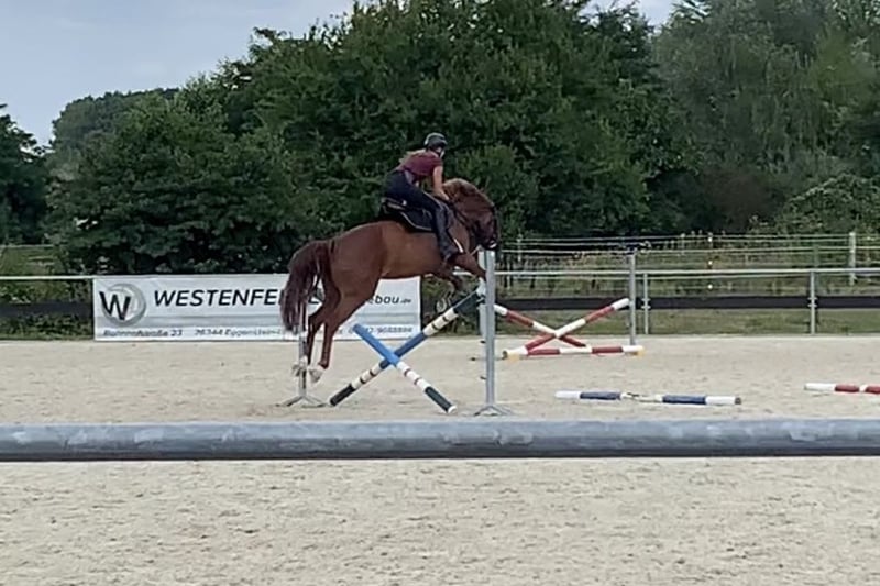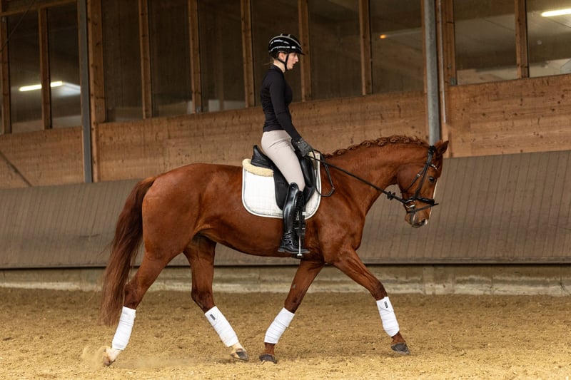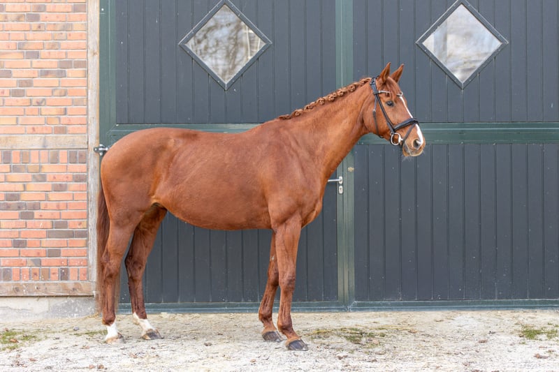 Due to time constraints, I am selling my beloved 13-year-old chestnut mare with a heavy heart. Delilah is a very sweet mare with no vices whatsoever. She is well-behaved in dressage and also jumps well, although she has not been trained extensively in show jumping. She is confident in the cross-country terrain both in a group and alone. Because of her schooling and studies, she has not been actively competed in dressage, but she remains unspoiled and suitable for small competitions. Since Delilah had a foal at the age of four and has successfully passed a good mare performance test, she could also be of interest for breeding purposes. Delilah is not suitable for complete beginners, as she is technically demanding to ride. She moves very actively forward but remains calm and obedient. Due to her delicate build, she should not be ridden by riders over 70 kg. Delilah is accustomed to box stall housing, herd life (including mixed groups), and is currently kept in an open stable. I would hope that she will find a new home with a similar stable environment. The mare is healthy, shod with normal front shoes, and is shoeing, loading, and traveling well. She is regularly vaccinated, dewormed, and presented to the dentist. Delilah has had minor health issues in the past, which no longer affect her. I am happy to provide more details in a personal conversation. Currently, she is ridden regularly with my trainer to support her development. Delilah is a wonderful partner for someone who wants to ride her with feeling, both in dressage and in the terrain, with ambition. It is very important to me that she finds a good home. For serious inquiries, please contact me by phone.