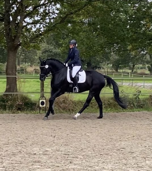 With a heavy heart, I have to part with my 13-year-old mare Val d’Isere N due to professional reasons. Valli impresses with an elegant appearance, three excellent basic gaits, and a consistently stylish jumping technique. She is very well-behaved both in handling and at competitions, making her ideal for amateur riders. In daily work, she is sensitive to ride and is familiar with trail riding, even without a saddle. In her last competition season in 2023, she won classes at L and M* level and placed in M** jumping. Subsequently, I bred her due to professional commitments, and in spring 2025, she foaled a colt by Cador. Since December 2025, Valli has been back in work under saddle and was able to impress immediately in 2026 with clear rounds and placings at her first competitions again. She is healthy, well-behaved for the farrier, loading, and trail riding, etc. A very good pre-purchase exam from 2021 is available. I am happy to answer further questions or send videos.