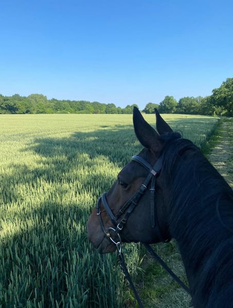 We are seeking a loving, lifelong home for our personable Hanoverian mare Ella (approximately 1.73 m, 13 years old), where she can enjoy her life and grow old peacefully. Ella has brought joy to many children and teenagers as a vaulting horse. Due to a back condition (more details gladly provided in a personal conversation), we are currently looking for a final place for her — as a non-ridden companion horse. She should enjoy her retirement with a caring horse enthusiast for whom riding is not the main focus. Since there is also a concern about osteoarthritis, we prefer her to be in a paddock system or similar (not kept solely in stables), with as much turnout as possible. She is accustomed to living in a mixed herd with mares and geldings (ponies and horses) on pasture. In the herd, she tends to be relatively high-ranking, but always fair. Ella enjoys riding in the field and remains calm and fearless during her outings. Encounters with tractors, dogs, drones, farm machinery, waste collection vehicles, joggers, and others are no problem for her. She is also used to being lunged on a lead. She is regularly dewormed and vaccinated and stands barefoot. Ella is easy to handle and loves being groomed, massaged, and pampered. She enjoys any kind of attention. She is also incredibly well-behaved around children and can be led effortlessly by the smallest handlers, always attentive. Due to her friendly and curious nature, we can also imagine her in animal-assisted therapy. Our wish is for Ella to find a new, meaningful role — as a partner for ground work, walks, or simply as a family member. Please feel free to contact us with any questions. Priority goes to a good home over price.
