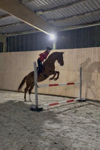 For sale is an exceptional Hanoverian mare – ideal for experienced leisure riders! This beautiful dark chestnut mare was foaled in 2012 and impresses with her resemblance to Ludger Beerbaum’s Goldfever I, as well as her versatile potential. With a height of 16.1 hh, she offers an ideal size for recreational and hobby riders. The mare has been trained up to medium level. She has competed successfully in show jumping up to L (training level), focusing on style rather than time. She is very well-schooled and no draw reins are necessary! Very gentle in the hand. Over the past two years, she has been lightly exercised due to lack of time but should be reintroduced to more regular activity. Currently, she enjoys hacking, especially in groups, very much. She is perfectly suited for those who love mares, enjoy group rides and jumping, and appreciate versatile training. With consistent training at least three times a week, she is very balanced and a loyal companion in any situation. Not suitable for idling or just occasional Sunday rides in the woods! Our mare is a bred sport horse and needs movement at least three times a week, preferably five to six. She is looking for a rider—preferably a teenager with sensitivity and motivation. She seeks a true bond. With genuine affection, she becomes a loving friend to everyone. In the big sport, I don’t see her excelling, as she lacks the intrinsic motivation for high-level competition. Versatility or hunting would suit her very well. X-rays are available, but fresh radiographs/health check (AKU) can also be arranged at the buyer’s expense. If interested, I am happy to provide further information and arrange a viewing.