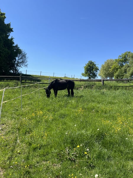 Chianti – Hannoveraner Stute, 14 Jahre alt - Abstammung(letztes Bild) Chianti ist eine ca. 1,69 m große Hannoveraner Stute, die nicht nur durch ihre elegante Erscheinung überzeugt, sondern vor allem durch ihr außergewöhnlich liebevolles und menschenbezogenes Wesen. Wer sie kennenlernt, merkt sofort: Diese Stute ist ein wahrer Engel. Im Alltag zeigt sich Chianti äußerst freundlich, sanft und zuverlässig. Sie ist in verladeform, schmiedeform, verkehrssicher und problemlos zu handhaben. Vorne ist sie bereits mit Eisen beschlagen. Chianti hat bereits Erfahrung in einer Herde gesammelt, ist eher rangniedrig und passt sich gut an. Sie stand jahrelang bei Schockemöhle als Zuchtstute in einer großen Herde. Unter dem Sattel befindet sich Chianti auf A-Niveau. Sie ist rittig, angenehm zu sitzen und arbeitet motiviert mit. Sie kennt sowohl einen Spring- als auch Dressursattel und lässt sich mit beidem angenehm reiten. Besonders hervorzuheben: Sie hat noch nie gebockt und geht problemlos alleine ins Gelände, weswegen sie auch für noch unerfahrene Reiter ein zuverlässiges Pferd ist. Gerne macht sie auch kleine Sprünge mit dir. Sie liebt es in den Wald zu gehen und genießt die Zeit mit Reiter. Man kann auch ganz locker an Halfter und Strick mit ihr eine Runde spazieren gehen, oder sie longieren. Chianti kann nicht mehr als Sportpferd für Turniere genutzt werden, da sie die Leistung körperlich nicht aufbringen kann. Aber sie eignet sich hervorragend als verlässliches Freizeitpferd und Zuchtstute. Sie sucht einen liebevollen Platz, gerne in einem Offenstall, an dem sie ihren Lebensabend genießen und weiterhin Freude schenken darf. Am liebsten wäre es ihr, wenn sie ganz oft an der frischen Luft ausgeritten werden darf. Chianti ist ein Pferd, das man vom ersten Moment an ins Herz schließt – treu, sanft und mit einer unglaublichen Menschenbezogenheit. Sie hat nur das Beste verdient ❤️ Bei ersthaftem Interesse sende ich auch gerne Videos.