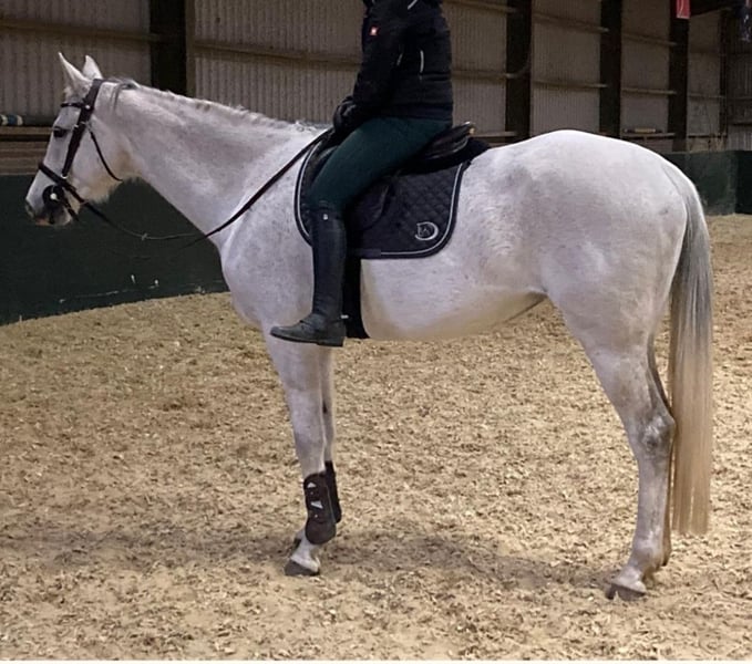 I am reluctantly selling my 11-year-old Hanoverian mare, as I can no longer manage her due to health reasons after many years. Seanna is 1.71 m tall and is sired by Stolzenfels x Quintender 2 x Escudo 1. She was born in 2012. During my ownership, she had a foal, making her interesting for breeding as well. She is a gem to handle; grooming, saddling, and loading are all no problem. She loves to receive attention and enjoys interacting with people. She is never rough and has a very gentle demeanor. Under saddle, she has a lot of go and is more of a sensitive horse with a nervous type. She never intentionally bucks the rider off and does not rear, although, typical for a mare, she sometimes lacks patience with all that energy and can lift her front end. She enjoys jumping, especially high, and likes to be kept busy with various activities. I see her going to an experienced rider who may not have a huge budget but has the skill and ability to channel her energy. Definitely more about finding the right home than the price. Trial rides are not possible, as she is currently not being ridden due to my situation. Riding videos are available. She is regularly seen by the farrier and is currently shod in front. Of course, she is vaccinated, dewormed, etc.