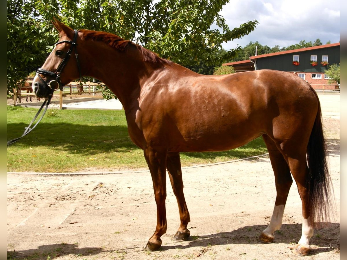 Yegua de ensueño Eternity S es una hermosa y elegante yegua Hannoverana de la línea de éxito de Estobar NRW y la yegua de premio estatal Wilde Wolke (Wolkenstein II x Werther). Nacida en 2011, combina una excelente genealogía en doma con un carácter dorado. Eternity S es mucho más que talentosa: es una compañera confiable que hace del montar una experiencia placentera. Con clasificaciones hasta la categoría de doma M** y movimientos en S* bien dominados, es ideal para quienes desean progresar en el deporte. Pero su mayor tesoro es su carácter: es completamente dócil, cercana a las personas, sin problemas para la ferradura ni para cargar en remolque, y también una compañera fiable en el campo. Es perfecta para jinetes jóvenes ambiciosos y jinetes en transición que buscan un caballo de calidad, fácil de manejar, sin complicaciones y con nervios de acero. La yegua, segura en las lecciones, es fácil de montar y especialmente apta para jinetes en transición y jinetes jóvenes con aspiraciones. Con gusto le enviamos un video actual de Eternity S bajo petición. No dude en ponerse en contacto a través de WhatsApp al 0172/4322493 (Maja Flemming).