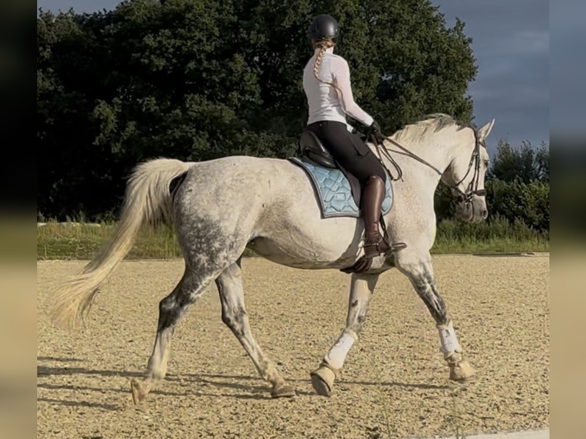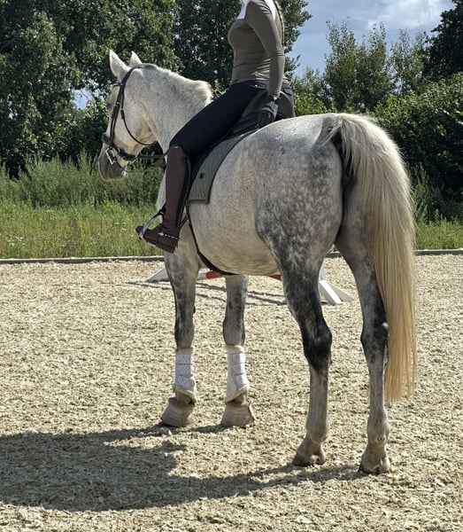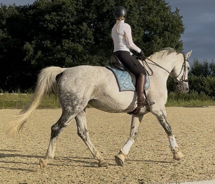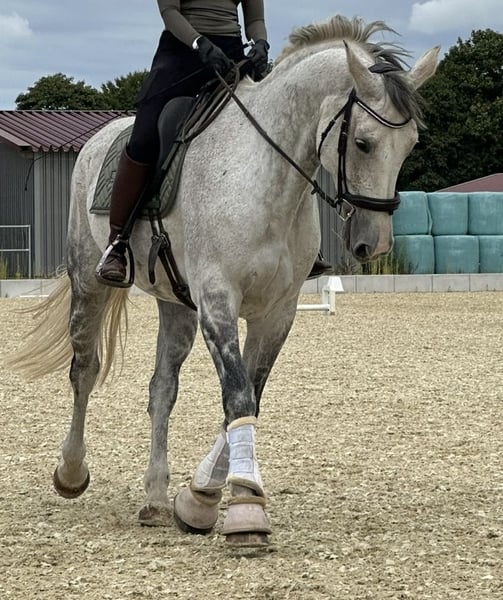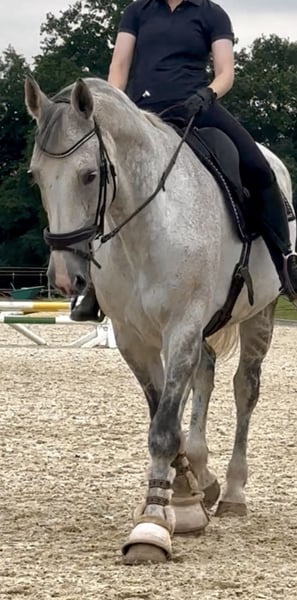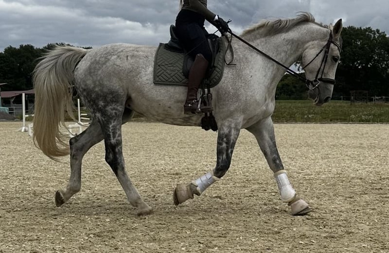 Since I am giving up show jumping, I have decided to sell my 14-year-old Hannoverian mare (Stolzenberg x Lordanos), standing at 175 cm. She is in excellent condition and eager to work. Due to her strong go, especially over fences, she is not suitable as a beginner's horse. I can very well imagine her as a teacher for someone with some jumping experience. She is absolutely reliable at the jump, never refuses, and never runs past. She always finds the right distances, even if they are not perfect. In handling, she is very sweet and people-oriented. Currently, she is barefoot but is also used to full shoes. She is kept in an active stable and is very happy with her turnout. She is also accustomed to being stabled overnight. She has a mild back issue (kissing spines), which does not affect her at all during riding. I purchased her with this condition and have never had any problems. She has competition experience, trained up to S-level show jumping, and has been presented at that level. However, due to her back, I believe she should no longer jump at such heights. Up to A/L level, she has no issues and enjoys it very much. I am explicitly not selling her as a competition horse, as she has already proven herself in that role, but I see her more as a leisure horse for someone who loves her and wants to learn from her, or possibly as a broodmare. A suitable jumping saddle can be purchased additionally for an extra fee. For a trial ride, I charge €35, which will be deducted from the purchase price if you decide to buy. Serious inquiries are welcome. Unreliable or unserious requests will not be answered. Priority goes to the right home over price.