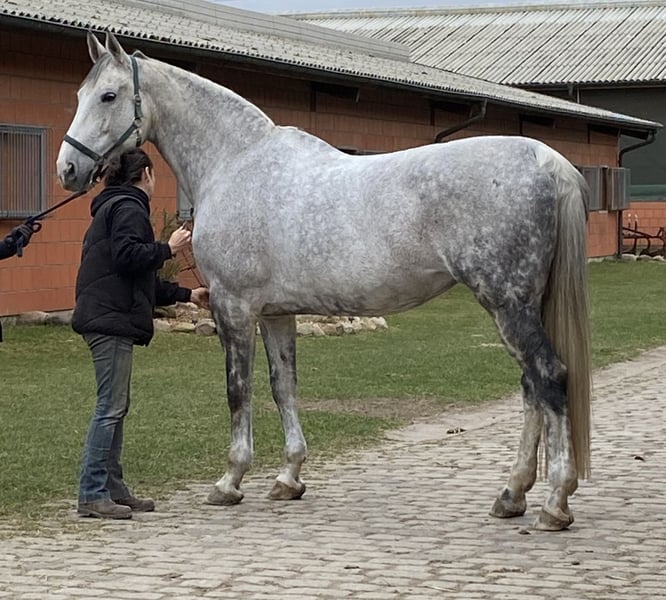 Ponieważ rezygnuję z jazdy skokowej, postanowiłem wystawić na sprzedaż moją 14-letnią klacz rasy Hannoverian, o wzroście 175 cm (Stolzenberg x Lordanos). Jest w doskonałej formie i chętnie pracuje. Ze względu na jej energiczne podejście do skoków, nie jest to koń dla początkujących. Mogę ją polecić osobom z już pewnym doświadczeniem w skokach, jako świetnego nauczyciela. Jest niezawodnym koniem przy skokach, nigdy nie zatrzymuje się i nie omija przeszkody. Przy dobieraniu dystansów zawsze radzi sobie dobrze, nawet jeśli nie jest idealny. W relacji z ludźmi jest bardzo łagodna i chętna do kontaktu. Obecnie chodzi na gołym kopycie, zna jednak także pełne obciążenie kopyt. Mieszka u mnie w stajni typu aktywnej i jest zadowolona z takiego trybu życia. Zna również nocowanie w boksie. Ma lekki stan zapalny w okolicy grzbietu (kissing spines), który jednak nie ogranicza jej podczas jazdy. Sama ją kupowałem z tym problemem i nigdy nie sprawiała trudności. Jest doświadczona w zawodach, wytrenowana do poziomu S w skokach i prezentowana na różnych konkursach, ale ze względu na jej stan grzbietu nie powinna już skakać na tak wysokim poziomie. Do wysokości A/L nie ma problemu i sprawia jej to dużą przyjemność. Wyraźnie jej nie sprzedaję jako konia turniejowego, bo już wiele dla tego sportu zrobiła, ale raczej widzę ją jako końka rekreacyjnego dla kogoś, kto ją pokocha i chciałby się od niej czegoś nauczyć, albo jako klacz hodowlana. Odpowiedni skokowy siodło można dokupić za dodatkową opłatą. Na jazdę próbną pobieram 35 €, które zostaną odliczone od ceny zakupu. W przypadku poważnego zainteresowania proszę o kontakt. Nie odpowiadam na niepoważne zapytania. Priorytet ma jakość, nie cena.