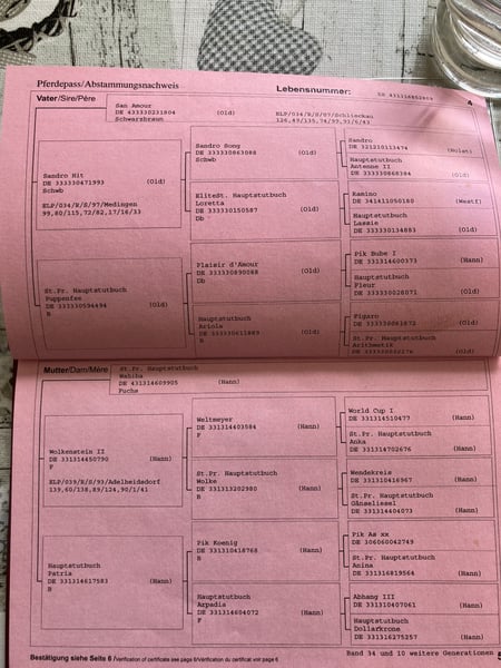 16-year-old main studbook mare for sale, in foal by Faber Castell, due to a reduction in breeding. The mare was ridden at a young age. Very well-mannered in handling.
