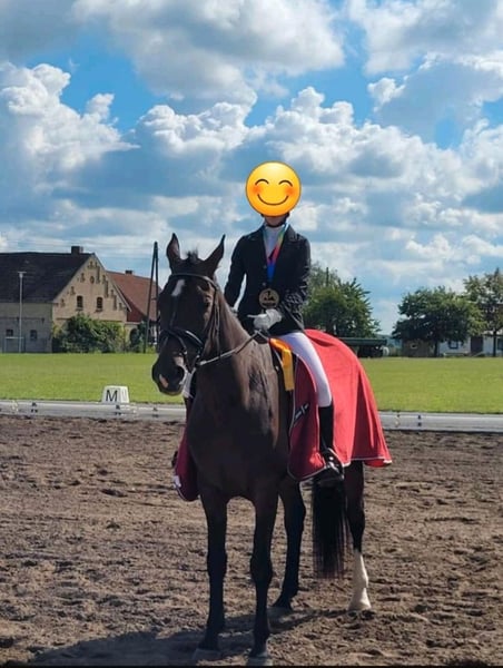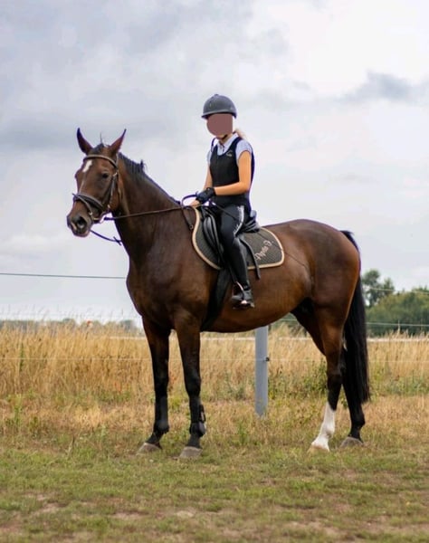 Nach langem hin und her haben wir uns entschieden unsere Stute Pepita ( Perigueux x Gloster) in gute und erfahrene Hände abzugeben. Sie ist 169cm groß, 16 Jahre jung, Pepita wurde von unserer Tochter Freizeitmäßig im Gelände einzeln und in Gruppen sowie auf Tunieren ( Schritt, Trap, Galopp und E Dressur geritten. Sie kennt springen bis A**. Sie ist als Tunierpferd und Zuchtstute eingetragen. Pepita hatte bisher 3 Fohlen wovon 2 bereits im Sport sind und letztes Fohlen jetzt 4 jährig sehr vielversprechend ist. Auch wenn sie schon ihr Alter hat,sie ist kein Anfänger Pferd! Sie ist zwar eine ehrliche Haut, kann aber auch sehr dominant sein, und evtl ihre Grenzen austesten. Dieses Jahr ist sie sehr wenig bewegt worden, muss also wieder neu "angeschoben" werden. Sie kennt Offenstallhaltung und fühlt sich da einfach am wohlsten, daher gebe ich sie auch nur in Offenstallhaltung ab. Regelmäßig geimpft, entwurmt, Zähne wurden gemacht. Ihr komplettes Zubehör kann auch dazu erworben werden, ist aber kein muss. tel. 01735158920