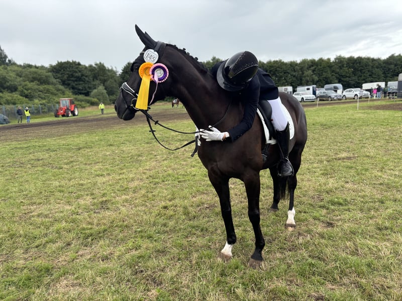 Dear loving Hannoveraner mare Darling SB for sale. We are urgently seeking a wonderful new home for our mare, born in 2008 and standing 16.1 hh. Darling descends from Desperados FHR / Rotspon. On June 1st, 2025, Darling was covered by Titolas, a very well-known dressage stallion. The insemination was successful on the first attempt, without any issues. We have had Darling for three years; prior to that, she lived with a young rider from foal age onwards. Darling is trained up to medium level in dressage and has competed successfully. Until last year, she still participated in competitions with my daughter. Darling also enjoys jumping. She loves hacking out, preferably in company—even if it’s just a bicycle. Darling has a fondness for water. She is healthy. We had a brief issue with mud fever, but it was quickly resolved through stall changes and proper care. She is barefoot, with no shoes. During past winters, she has always been stabled in a box. Now, as she is pregnant, she is turned out with two other pregnant mares and foals in an outdoor paddock. We feel we can no longer do her justice. Even before her pregnancy, Darling was no longer regularly ridden. Currently, she only receives occasional groundwork sessions two to three times a week. The focus is now on gentle handling and care. ✨ Character ✨ Darling is an absolutely affectionate, human-oriented mare. She is sensitive and can sometimes be a “typical mare.” She has a lot of energy. Therefore, she is only suitable for an experienced rider. Not for beginner riding schools. She needs a secure, loving, and consistent hand. She is farrier- and loading-friendly, sound, and well-behaved in her herd. Currently, due to circumstances, she is not rideable. However, there are plenty of videos online, for example on Rimondo, where you can also see her competition results. The previous owner received good reviews. My daughter was not yet fully trained as a rider, and now it is no longer possible. Our wish for her: A loving home where she is the number one, can spend lots of time outdoors, and is engaged in versatile activities. We especially imagine her as a mother-daughter team or with a caring family. It is very difficult for us to part with Darling. We have waited too long already. We also know that, due to her pregnancy, finding a suitable home will be more difficult now. Due to the circumstances, we are selling her well below market value (although she is truly priceless). If you are interested or have any questions, we look forward to hearing from you!