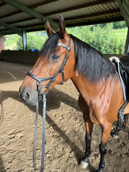 Schweren Herzens suche ich aus zeitlichen Gründen ein neues, liebevolles Zuhause für meine 19-jährige Hannoveraner Stute Ella (ca. 1,60–1,62 m). Ella ist eine sehr hübsche, erfahrene und vielseitige Allrounderin. Ob Dressurarbeit (aktuell bis A-Niveau, L-Lektionen angeritten), entspanntes Ausreiten, Bodenarbeit, Longe oder kleine Sprünge – sie ist mit Freude dabei und reagiert fein auf Hilfen. Sie ist ein charakterstarkes Pferd, das eine klare und ruhige Führung braucht. Hat sie diese, zeigt sie sich zuverlässig und loyal. Damit ist sie auch als Familienpferd denkbar – mit entsprechender Unterstützung durch erfahrene Erwachsene. Im Alltag ist Ella souverän: Landmaschinen, Windräder, Hunde etc. kennt sie gut. Fremden gegenüber ist sie anfangs etwas skeptisch, fasst aber schnell Vertrauen. Aktuell läuft sie barhuf (war auch schon beschlagen), ist brav beim Hufschmied und regelmäßig geimpft sowie osteopathisch betreut. Verladen ist aktuell wenig Routine und sollte wieder geübt werden. Sie hat EOTRH, kommt derzeit aber gut damit zurecht und ist im Alltag unauffällig. Mir ist besonders wichtig, dass Ella in ein liebevolles, verlässliches Zuhause kommt, in dem sie weiterhin abwechslungsreich beschäftigt wird. Platz vor Preis ❤️ Anfragen gerne auch per Telefon / WhatsApp 017624641348