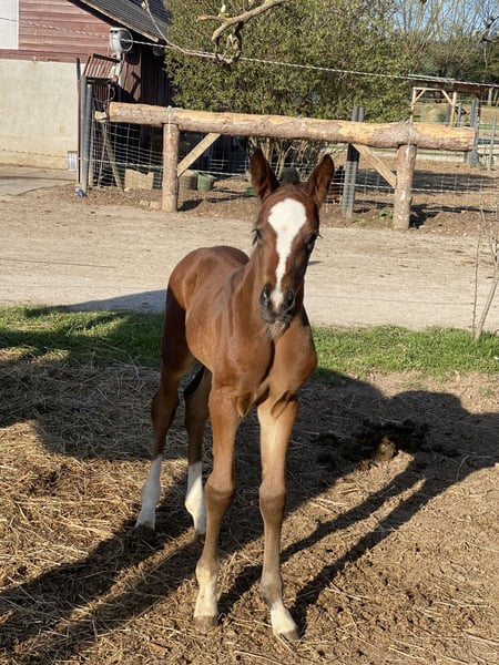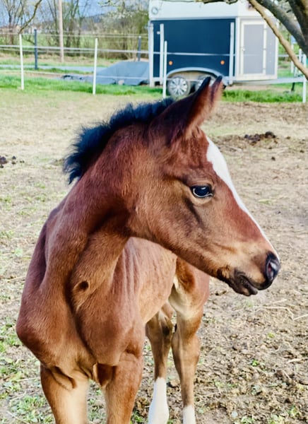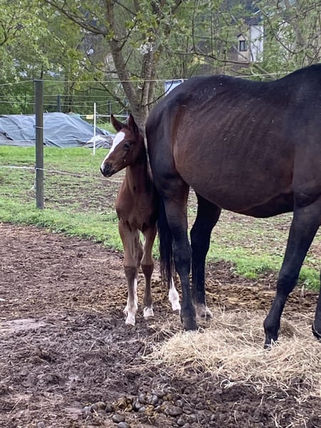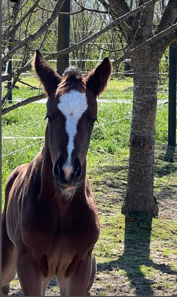 Dieses Hannoveraner Stutfohlen von Sir Donnerhall entstammt einer konsequent durchgezogenen Dressurlinie, in der Qualität, Leistungsbereitschaft und klassische hannoversche Werte im Mittelpunkt stehen. Sir Donnerhall prägt seine Nachkommen mit Ausdruck, Eleganz und hervorragender Rittigkeit – Eigenschaften, die ihn zu einem der gefragtesten Dressurvererber machen. Die Mutterlinie ergänzt diese Veranlagung ideal: Benetton Dream bringt Elastizität und moderne Bewegungsmechanik ein, während Weltmeyer für Substanz, Tragkraft und Verlässlichkeit steht. Das Stutfohlen zeigt sich bereits jetzt mit viel Typ, Harmonie und sehr guten Grundgangarten. Der schwungvolle Bewegungsablauf, die natürliche Selbsthaltung und die klare Dressurveranlagung lassen auf eine vielversprechende sportliche Zukunft schließen. Ein hochwertiges Nachwuchspferd für anspruchsvolle Züchter und Reiter, die Wert auf bewährte Genetik, Qualität und nachhaltige Dressurvererbung legen.