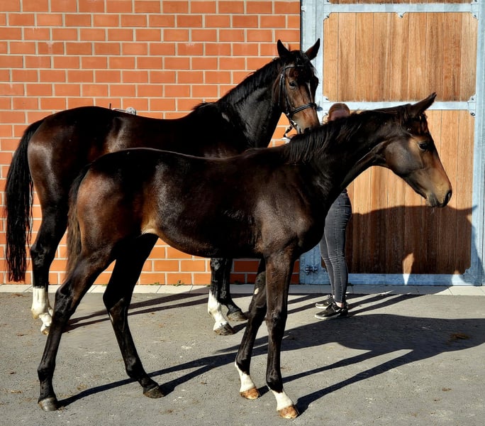 *** Biene Maya *** For Sale! Zum Verkauf steht ein interessantes dunkelbraunen Stutfohlen von Bon Succes aus einer Q7 x Danone I Mutter. Ausgestattet mit schönen GGA ist sie eine tolle Empfehlung für Sport und Zucht. Bei Interesse oder weiteren Fragen stehe ich Ihnen gerne zur Verfügung. Besichtigungen sind nach Absprache möglich. Lassen Sie sich diese Gelegenheit nicht entgehen!