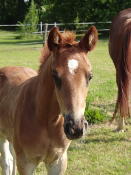Schickes Fuchsstutfohlen von doppelt veranlagten Vidar