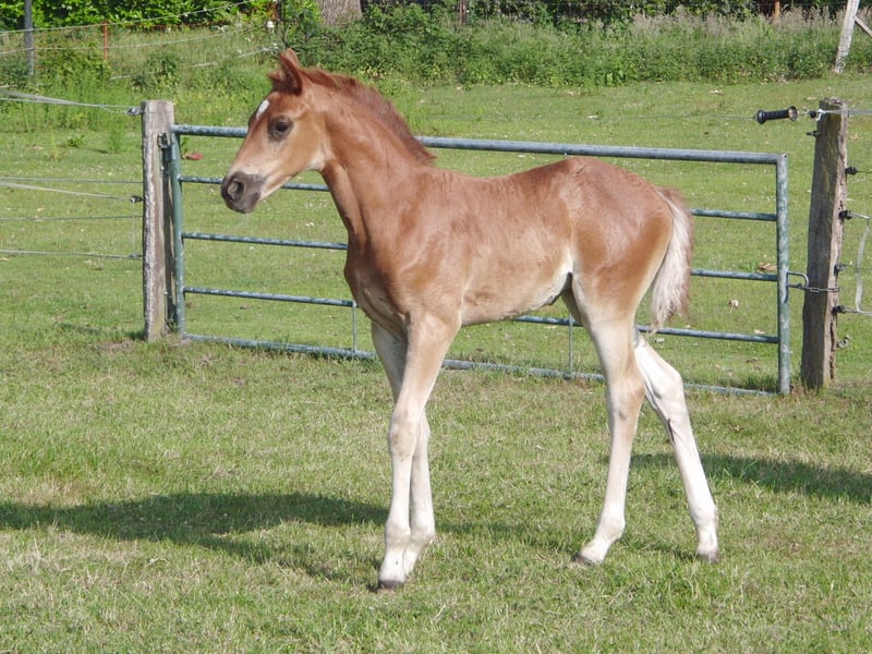 Intelligentes, menschenbezogenes und charakterstarkes Fuchs-Stutfohlen mit gutem Fundament und starkem Antritt ausgestattet. Über ihren Vater schreibt das Landgestüt Celle: Vidar, Viscount – Edward – Contendro – Espri: ein Pedigree welches in Vollendung Doppelveranlagung symbolisiert. Manier und Vermögen am Sprung gepaart mit drei hervorragenden Grundgangarten all‘ dies macht Vidar zu einem Allrounder in Perfektion, dazu bestechend im Typ und großzügig im Rahmen: An Vidar kann man nicht vorbeischauen! Der Muttervater Floris Prince legte eine fantastische Hengstleistungsprüfung in Adelheidsdorf ab. Mit dem zweithöchsten Zuchtwert Dressur von 143 bekam er die Note 9,0 für seine Elastizität im Trab und für seine enorme Rittigkeit. Auch die Testreiter waren von seinem Reitkomfort begeistert und vergaben Höchstnoten. Und die weitere Abstammung der Mutter von Don Vino (Donnerhall x Consul (Trak.) und dann Brentano x Weingau lässt keine Wünsche offen. Dieses ansprechende Fräulein hat täglichen Menschenkontakt und wächst im Herdenverband mit viel frischer Luft auf. Ein angenehm unkompliziertes Fohlen. Geboren am 11.04.2025.