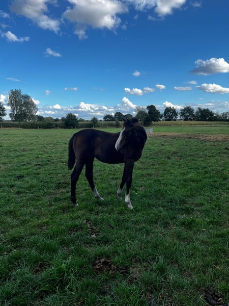 Potranca de cría de Chardonnay x Mylord Carthago Chardonnay (hija de Clarimo) fue caballo de la Copa del Mundo con Max Kühner. Premiada con la Medalla de Oro por la Asociación Hannoverana en la feria de potros en Oyten. Desarrollada y criada en condiciones adecuadas, puede permanecer allí incluso después de la venta. Ya sabe ser manejada a la cuerda y se le ha herrado. Aún puede convertirse en alazana.