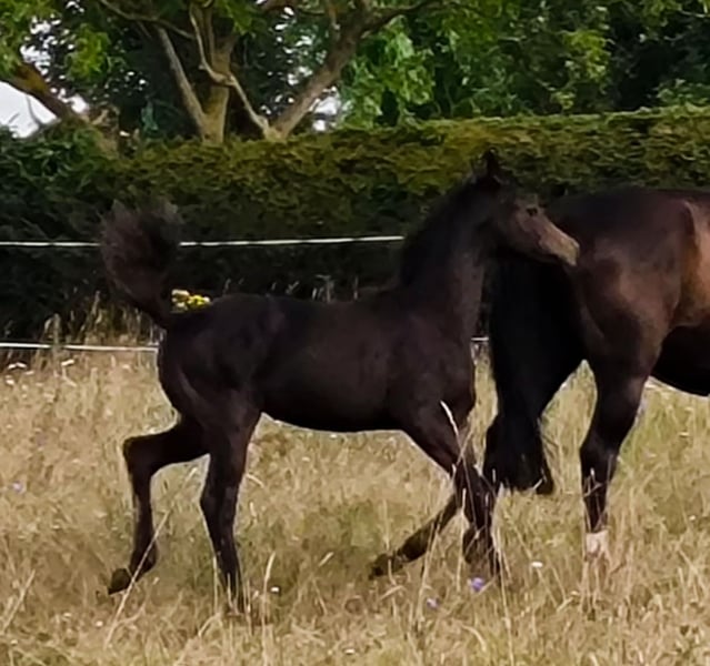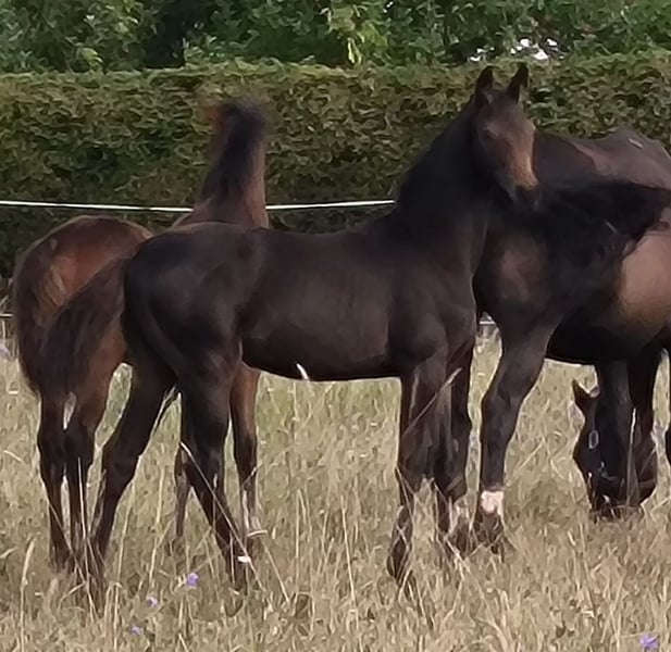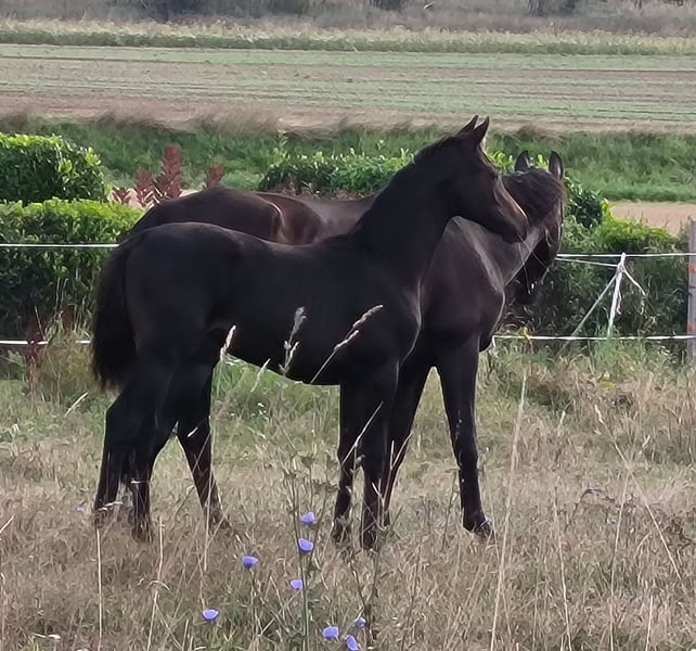 **Verkaufsanzeige: Traumhafte Hannoveraner Stute** Zum Verkauf steht eine beeindruckende Hannoveraner Stute, geboren im Jahr 2024. Diese elegante schwarzbraune Schönheit hat ein Stockmaß von 170 cm und überzeugt durch ihre ansprechende Statur und ihr harmonisches Erscheinungsbild. Vater ist kein geringerer als Ingrid Klimkes Franziskus. Der erfolgreiche Hannoveraner Mutterstamm von Wolkentanz I & II, Chasseur I & II sowie Ballettmeister rundet das Pedigree dieser Stute ab. Die Stute ist bestens für die Dressur geeignet und zeigt bereits vielversprechende Ansätze in der Ausbildung. Sie verfügt über eine ausgeglichene und freundliche Persönlichkeit, die sowohl im Umgang als auch unter dem Sattel begeistert. Ideal für ambitionierte Reiter, die ein talentiertes Pferd für den Dressursport suchen. Sie ist gut erzogen und hat ein hohes Maß an Lernbereitschaft, was sie zu einer vielversprechenden Partnerin für zukünftige Erfolge macht. Bei Interesse oder für weitere Informationen stehe ich Ihnen gerne zur Verfügung. Lassen Sie sich diese Gelegenheit nicht entgehen und vereinbaren Sie einen Besichtigungstermin!