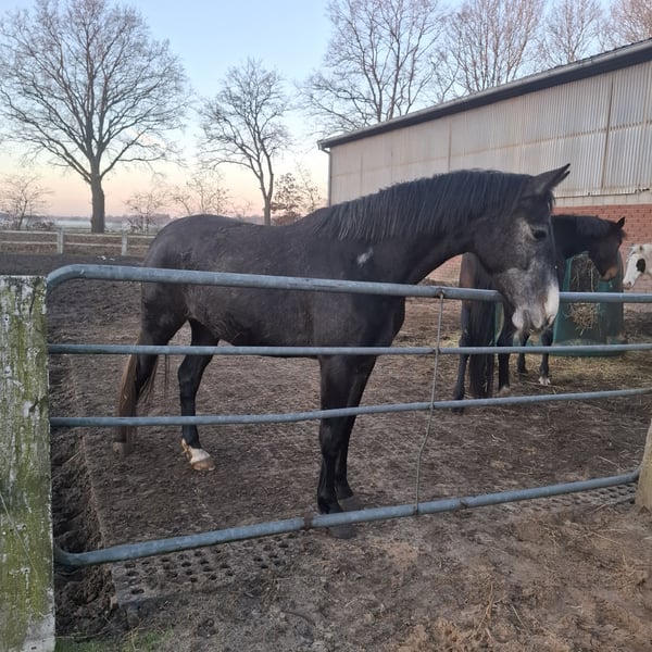 Vendo una excelente y joven yegua Hannoverana de 3 años con una magnífica descendencia (linaje antiguo). La venta solo se realiza porque no puedo dedicarle suficiente tiempo debido a mis pequeños. Está acostumbrada a llevar halter, ha sido revisada regularmente por el herrador y ya ha viajado varias veces en remolque. Charisma conoce vacas, tractores, perros, el ruido de la calle y a los niños. Su padre fue exitoso en concursos hasta la categoría de S en salto. Su madre compitió con éxito en doma hasta la categoría L. Ambos progenitores forman parte del programa de caballos de salto del Verband Hannoveraner. Tiene un carácter excelente y buenas trotes.