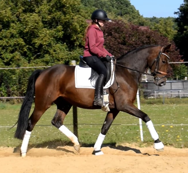 A horse like you rarely find. Beautiful, expressive mare equipped with three excellent gaits. Reliable in character and very easy to ride. Vajana is perfectly suited for both demanding dressage sport and amateur riders. She is very well trained for her age and is on her way to Dressage Horse - A. Vajana is ridden in the indoor arena and on the outdoor arena, where she presents herself absolutely uncomplicated. Trial rides possible at any time by arrangement. More information can be found on our website. Hof Heisterbusch Team.