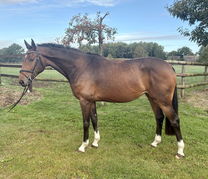 Antonia was born and raised at the Hollen breeding farm in Oyten. Descending from All Star (Denis Lynch) - Catoki - Quidam de Revel - Cento, from the lineage of Jürgen Hattebuhr, she is a more than interesting breeding mare. At the beginning of 2025, we started her under saddle. The mare proved to be uncomplicated, with appealing movements and a lot of talent for jumping in free jumping. An ideal opportunity for someone who wants to train a great young show jumping horse. Radiologically, Antonia is without any findings (radiographic report from 02/2024 attached). In the summer of this year, Antonia developed a slight summer eczema in the pasture. For this reason, we are offering Antonia at a protective price to good hands. We look forward to your call. Best regards, Bettina Friemel Hollen Breeding Farm