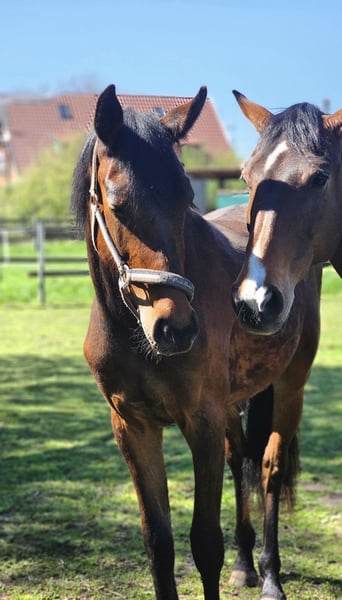 Wenn man eigentlich nicht verkaufen möchte … Manche Pferde wachsen einem leise, aber tief ins Herz – und genau so ein Pferd ist diese im Mai 2023 geborene Stute von Diacontinus aus einer Qualito x Viscount Mutter. Sie bringt nicht nur drei sehr gute Grundgangarten und ein korrektes, kraftvolles Exterieur mit, sondern vor allem etwas, das man nicht kaufen kann: Charakter. Immer freundlich, neugierig und dem Menschen zugewandt. Sie sucht die Nähe, beobachtet aufmerksam und begegnet neuen Situationen mutig und unerschrocken. Mit ihren auffallend langen Beinen, einem traumhaften, harmonischen Körperbau und einem sehr schicken, ausdrucksstarken Gesicht ist sie eine echte Erscheinung. Aktuell ist sie bereits ca. 167 cm groß, dabei kurz, kompakt und sehr korrekt gebaut. Sie steht auf einem Fundament, das einfach überzeugt – mit sehr guten Beinen und großen, korrekten Hufen, die einem jeden Tag ein gutes Gefühl geben. Die Stute ist roh und altersentsprechend aufgewachsen. Sie kennt Halfter, Führen sowie den Hufschmied und zeigt sich dabei stets brav, neugierig und unkompliziert. Ihr Wesen ist absolut freundlich, aufgeschlossen und sehr menschenbezogen. Gesundheitlich hatte sie bisher nie Probleme, zeigt keine äußeren Auffälligkeiten und ist regelmäßig entwurmt. Sie wächst so auf, wie junge Pferde aufwachsen sollten: artgerechte Offenstallhaltung mit 24/7 Weidegang, viel Bewegung und soziale Kontakte. Genau deshalb fällt diese Entscheidung so schwer. Nicht, weil ihr sportlich etwas fehlt – ganz im Gegenteil: Springen, Vielseitigkeit oder Dressur, Amateur- oder Profisport – ihr steht alles offen. Wer diesem Rohdiamanten nun noch Zeit zum Reifen gibt und mit Ruhe, Geduld sowie fundiertem, pferdegerechtem Wissen ihre Ausbildung beginnt, gewinnt einen absoluten Traumpartner auf Lebenszeit. Ich wünsche mir für sie ein echtes 5-Sterne-Zuhause, mit viel Auslauf, Zeit und Verständnis. Abgabe erfolgt nicht in Boxenhaltung mit nur wenigen Stunden Bewegung, keine Kompromisse bei ihrem Wohl. Ebenso keine Abgabe ins Ausland. Standort: 39356 Preis: 12.500 € VB Diese Anzeige ist kein Muss-Verkauf. Sie ist ein Loslassen in die richtigen Hände. Wer ein junges Pferd sucht, das nicht nur Talent, sondern auch Herz besitzt, darf sich gern telefonisch melden – aber bitte nur, wenn sie wirklich ankommen darf.