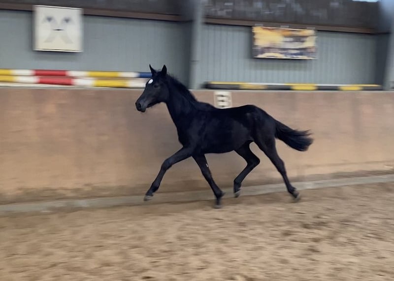 Presentazione di Chante': Sono nata a Fischerhude, un villaggio di artisti. Essendo stata scelta come compagna di scuderia, ho potuto trasferirmi come cavalla da monta sulla riva del Weser, presso il maneggio Buchenhof. Qui ho conosciuto la mia amica e ho trascorso momenti meravigliosi sulle vaste praterie della palude lungo il Weser, dove sono cresciuta splendidamente. Ora però è arrivato il momento di imparare qualcosa di nuovo. Sono nata a maggio e, sì, ho appena tre anni, quindi il mio addestramento sta iniziando ora. Attualmente sto imparando a camminare dolcemente in circolo con la longe, a portare la sella e il bavero. Se posso rimanere qui, anche se dovessi essere venduta, mi piacerebbe passare l’estate al pascolo fino a ottobre. A quel punto sarò già iniziata alla monta e potrò continuare a essere montata nel mio nuovo ambiente. Sarebbe fantastico per me. È anche possibile che io parta già da ora, se così si desidera. Proprio ieri il veterinario è venuto a controllarmi: tutto perfetto! Mi hanno fatto le radiografie, anche di collo e schiena – tutto impeccabile, senza alcun problema. Ora sono ben preparata e cerco una bella casa dove poter iniziare il mio percorso come cavallo da dressage. Il mio passo è valutato come un 12, ma anche trotto e galoppo sono già pronti per le competizioni di livello superiore 💪🥇. Sto ancora crescendo e penso di raggiungere circa 170 cm di altezza. La mia struttura è elegante, ben proporzionata, con lunghe gambe. Sono una femmina castrata, ho ottimi zoccoli. Inoltre, sono molto socievole con gli altri cavalli e naturalmente molto bella 🌸🩷. Chi desidera visitarmi è il benvenuto. Chiamatemi pure al 01736782519.