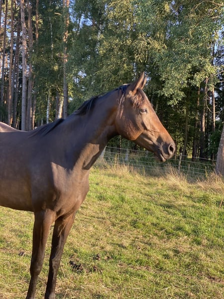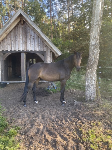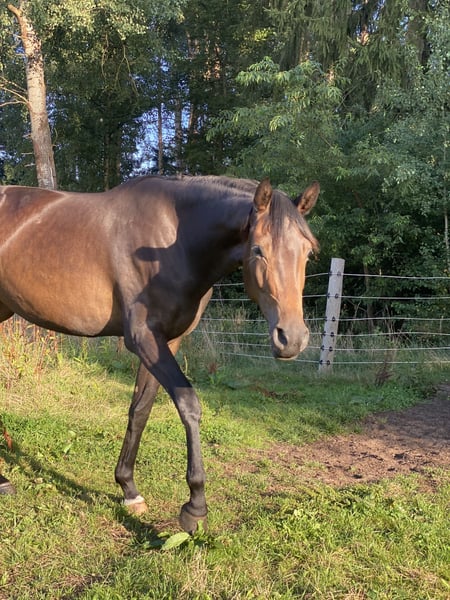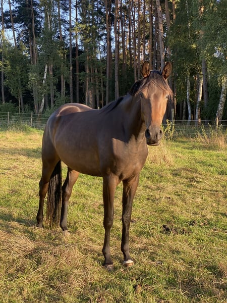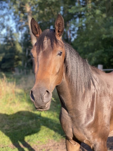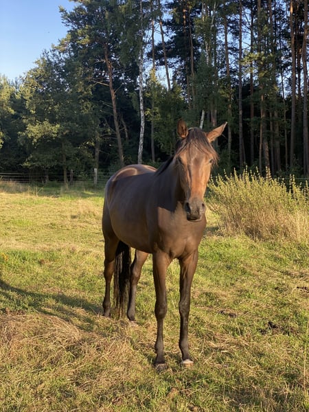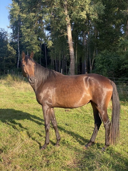 We are selling our 3-year-old (born 12.06.2022) dark brown mare by Millenium x Floriscount x Sandro Hit x Weltmeyer. She has good basic gaits, with the walk being particularly noteworthy. Her current height at the withers is approximately 1.67 cm. The mare was raised in a family environment and is sold directly by the breeder. The sale is due to a reduction in stock. Pickup is possible towards the end of the grazing season. The mare will be sold untrained. This is a private sale, therefore no guarantee, warranty, or return.