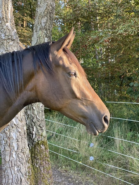 Wij verkopen onze 3-jarige (geboren op 12-06-2022) donkerbruine merrie van Millenium x Floriscount x Sandro Hit x Weltmeyer. Ze beschikt over goede gangen, waarbij de stap benadrukt moet worden. Haar huidige schofthoogte bedraagt ongeveer 1,67 cm. De merrie is met gezinsverbinding opgevoed en wordt rechtstreeks van de fokker verkocht. De verkoop vindt plaats vanwege het verminderen van de voorraad. Afhalen tegen het einde van het weideseizoen is mogelijk. De merrie wordt onbereden aangeboden. Dit is een particuliere verkoop, daarom geen garantie, waarborg en retour.