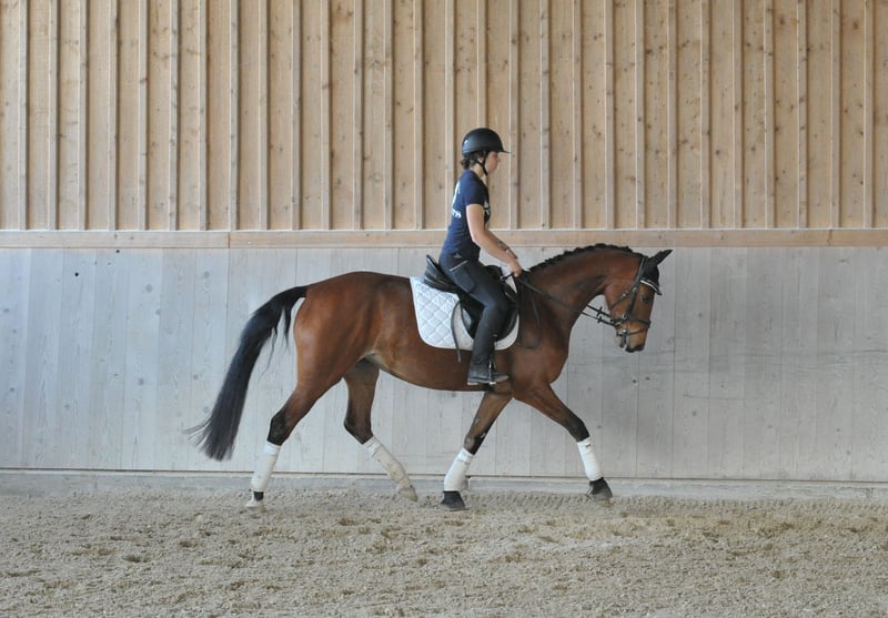 Bezaubernde Hannoveraner-Stute mit 3 guten GGA, sehr gut gezogen von dem bekannten Vererber Scolari, vermittelt sie ein gutes Reitgefühl. Einfach durchs Genick, sowohl für die Dressur als auch für Springen geeignet.