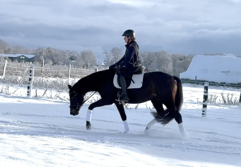 This lovely mare is very confident despite her young age and is eager to explore the world! She comes from a very strong dam line and has all the qualities to become an excellent young dressage prospect. Thanks to her exceptional temperament, she is also ready for all kinds of adventures and fun. If you're looking for a best friend for both enjoyment and sport, she's the perfect match! She is also shoe and load-in friendly. Breeding inspection without any issues. For more information, please contact me by phone or WhatsApp at 0172-2942839.