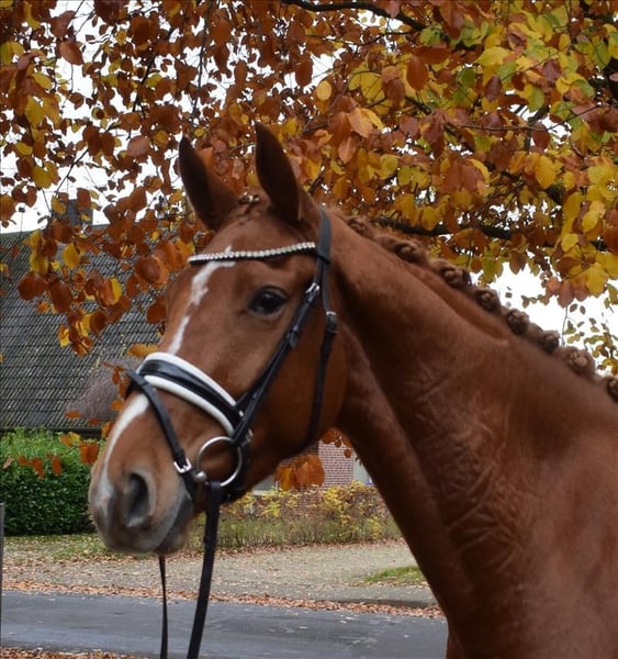 An athletic mare that immediately captures attention. She boasts a very good canter, a ground-covering walk, and an extremely elastic trot. Highly rideable, always attentive to her rider. She is very calm-nerved and very easy to ride. For more information, please visit our website. Test rides are available at any time by appointment.