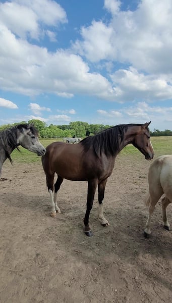 Warmbloed Hannoveraanse merrie. Vader: Zoom (DE 431316793414) Dressuurgericht, met drie hoog gestikte witte benen, een bles met het teken Z, een brede bles, volledige manen en staart. Van nature uitstekende basisgangen. Moedig, open, zelfverzekerd, levendig en nieuwsgierig van aard. Liefdevol. Groeit op in een gemengd kuddeverband, zeer sociaal en goed geïntegreerd. Gebruiksgebied: gewenst voor de sport, met zichtbaar uitzonderlijk potentieel voor de discipline. Gezondheid: gechipt, ontwormd en gevaccineerd. Heeft geen slechte gewoonten, kent de hoefsmid en is gewend aan het laden. Huidige opleidingsniveau: leeftijdsadequaat, speels en met veel liefde en geduld. Aangelijnd aan zadel, bit en dekens; is aangeleerd aan longeren, dit is onder begeleiding van een professionele instructrice gedaan en op leeftijdsadequate, speelse wijze opgebouwd. Indien gewenst kan een gezondheidscheck (AKU) besproken worden in een persoonlijk gesprek. De prijs stijgt naarmate de opleiding vordert. Deze prachtige, dressuurgerichte Hannoveraanse merrie overtuigt met haar uitstekende basisgangen en haar moedige, open karakter. In haar afstamming bevinden zich twee van de meest invloedrijke dressuurverervers van onze tijd, Zoom en Escolar. Beide lijnen staan voor krachtige, elastische bewegingen, uitstekende rijdbaarheid en sportieve bereidheid. Dit alles is al zichtbaar in haar indrukwekkende kwaliteit en uitstraling. Karakter en uitstraling: Zohara ES straalt een liefdevolle, duidelijke aard uit en heeft een natuurlijke uitstraling. Ze is attent, mensgericht en leergierig in haar omgang. In beweging overtuigt ze met een ruime stap, een schwungvol draf, actieve achterhand en veel elasticiteit in de rug. Ze groeit op in een natuurlijke omgeving in een gemengd kuddeverband, is gezond, correct gebouwd en toont zich goed ontwikkeld voor haar leeftijd. Toekomstperspectief: Met haar hooggekwalificeerde afstamming, haar heldere karakter en veelbelovende basisgangen biedt Zohara ES uitstekende voorwaarden voor de dressuur, voor de ambitieuze dressuurruiter en ook voor de hogere fokkerij. Een jonge merrie met charme, genetica en toekomstperspectief – ideaal voor ambitieuze ruiters, instructeurs of fokkers die waarde hechten aan kwaliteit en potentieel.