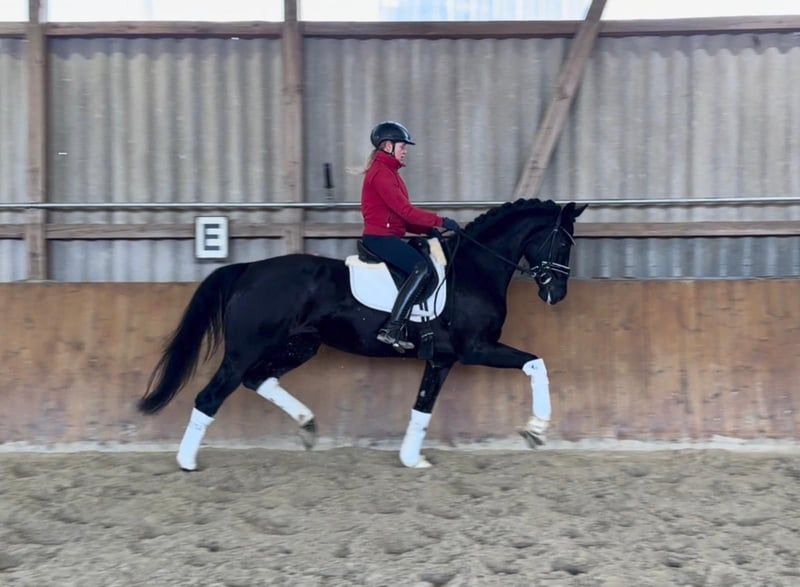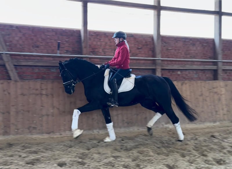 Schwarze Top-Stute mit viel Potenzial! Diese vielversprechende 4-jährige Stute wurde vor Kurzem schonend angeritten und steht noch voll in ihrer Entwicklung. Sie zeigt sich motiviert, aufmerksam und stets auf den Reiter fokussiert. Dabei überzeugt sie mit ihrer sensiblen und feinen Art. Der aktuelle TÜV ist ohne Befund. Preis zzgl. gesetzlicher Mehrwertsteuer.