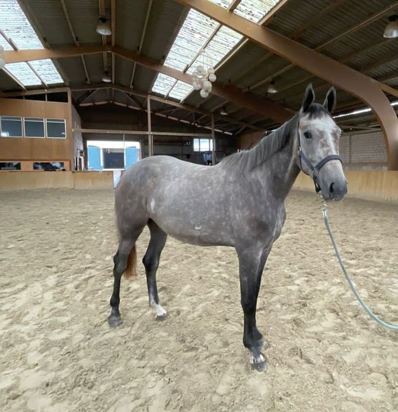Notre jument de trois ans est polyvalente ; elle est élevée pour le saut d'obstacles et se comporte bien. Elle a déjà été mise en longe avec une selle. N'hésitez pas à nous contacter pour de plus amples informations.
