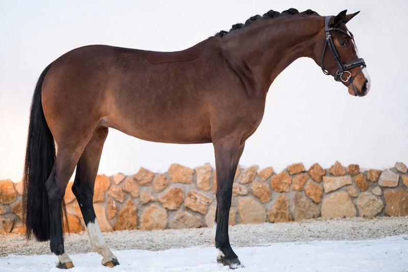 Piękna, pełna charakteru, energiczna 4-letnia klacz o doskonałym rodowodzie. Santos x Sir Donnerhall x Belissimo obiecuje najlepsze geny sportowe. W zupełności nie jest stępowa w zachowaniu ani podczas jazdy. Codziennie zmotywowana i chętna do nauki czegoś nowego, idealny koń treningowy z wszystkimi możliwościami. Duża mechanika, zawsze w górę, z doskonałym tylnym końcem i prawidłowym fundamentem. Już była zwycięskim źrebięciem w konkursie Hannoveraner. Chętnie można ją wypróbować w 97285. Zna padok, lonżę, paddock, teren i ujeżdżalnię. Jeszcze nie była publicznie prezentowana. Cena brutto, do negocjacji. Vb38🥕