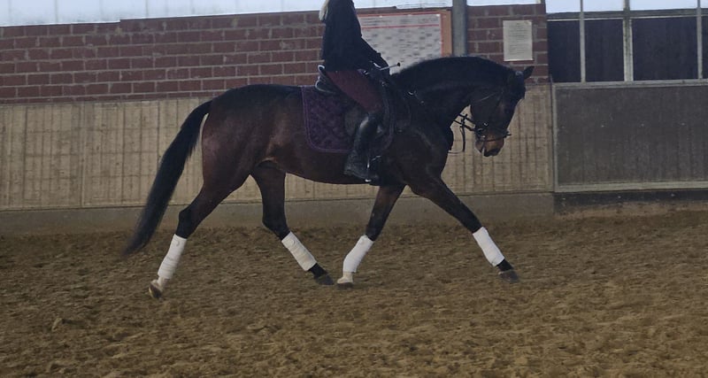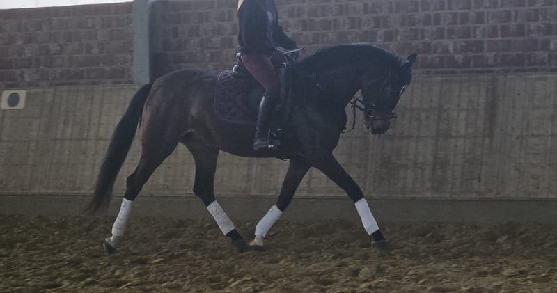 Siena is a Hannoverian mare currently standing at 16.1 hh with excellent breeding. She will turn four on January 31, 2026. Siena is an exceptional horse in terms of quality. She has an outstanding conformation and temperament, with above-average gaits. She is a promising prospect for the larger dressage arena. This year, Siena has been gently backed and is now ready for further training. She comes directly from the breeder. Overall, Siena is very uncomplicated and easy to handle. For more information, please contact us at: 0177/2721831. Price on request.