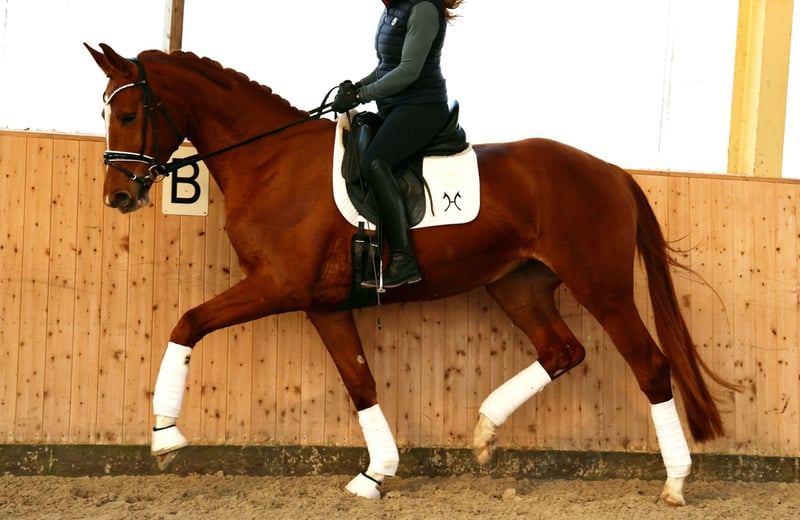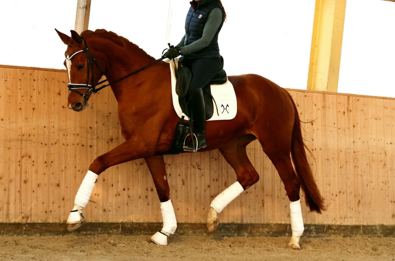 Direkt aus Züchterhand präsentiert sich diese talentierte, noch jugendliche Nachwuchshoffnung. Mit ihrer hervorragenden Reitqualität, drei gleichermaßen guten Grundgangarten und ihren tollen Charakterwerten bringt sie alles mit für ein künftig erfolgreiches Turnierpferd. Vater Toto Gold stammt aus der Schatulle der elitären KWPN-Dressurpferdezucht mit einem Pedigree der Sonderklasse: Der hochgeschätzte Glock’s Toto Jr trifft auf die Vollschwester des Doppelweltmeisters Jovian. Überaus elegant im Habitus, korrekt im Fundament und vom Fleck weg kraftvoll, dynamisch und dabei taktbeflissen in jedem Moment seiner schwungvollen Bewegungen, so zeigt sich Toto Gold. Mütterlicherseits folgen mit De Niro, Sandro Hit und Brentano II gleich drei absolute Legenden der deutschen Dressurpferdezucht. Alle drei stellten gleichermaßen Nachkommen für den internationalen Top-Sport. Video auf Anfrage. Röntgenbilder liegen vor.