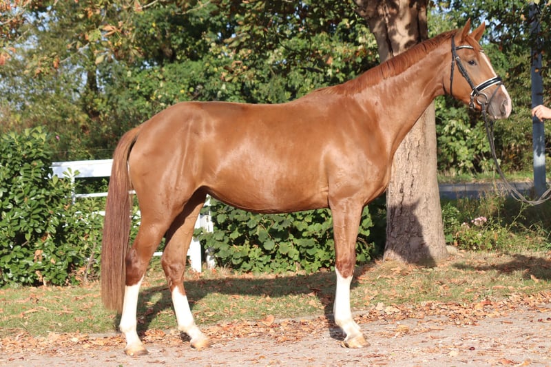 Typvolle 3-jarige merrie van Sezuan x Floris Prince, met 3 uitstekende basisgangen. Ze is braaf in de omgang, maar nog niet zadelmak. Prijs exclusief BTW. Aanvragen uitsluitend telefonisch, e-mails worden niet beantwoord.