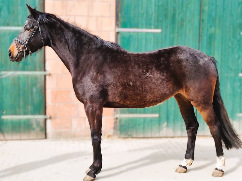 Hannoverian mare, born in 2022, dark bay, approximately 174 cm at the withers. This promising young prospect was lunged before winter and has now been ridden appropriately for her age for about 8 weeks with careful training. She is well-suited to all basic gaits and already quite rhythmical; her greatest strength is her canter. She has already completed trail rides and small jumps with her rider. She remains always manageable and "cool" under saddle. Her temperament can be described as fearless, strong-willed, and eager to work and learn. Ziva has been well socialized within a herd environment and impresses with robust health (current very good X-ray results from April 2026 available). Her mother comes from the "Thüringeti" (365 days/year herd management on pasture), and this toughness has been positively inherited. For the ambitious rider, this offers a future in show jumping and eventing. Also interesting for breeding: Ziva Dream comes from the Oldenburg line 107 (mare line 115), which is especially maintained by the Sosath family. Approved stallions include: Landor S, Lagoheidor, Lambrusco Ask, Cador, Diamant de Landor, and others. https://horsetelex.de/horses/pedigree/2588845/ziva-dream We look forward to hearing from you for further information or to arrange a personal impression.