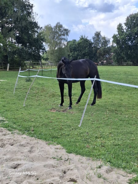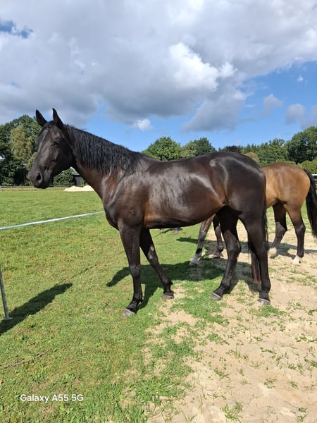 **Verkaufsanzeige: Wunderschöne Hannoveraner Stute** Zum Verkauf steht eine beeindruckende Hannoveraner Stute, geboren im Jahr 2021. Diese elegante Rappstute hat ein Stockmaß von 180 cm und zeigt sich in hervorragender Verfassung. Sie ist talentiert im Dressurbereich und verfügt über ausreichend Potenzial fürs grose Viereck. Mit ihrem ansprechenden Exterieur und ihrem freundlichen Wesen ist sie sowohl für erfahrene Reiter als auch für Freizeitreiter mit Jungpferde Erfahrung geeignet. Die Stute zeichnet sich durch ihre hohe Lernbereitschaft und ihren ausgeglichenen Charakter aus. Sie ist brav im Umgang und hat bereits erste Erfahrungen unter dem Sattel gesammelt. Wenn Sie auf der Suche nach einer talentierten und schönen Stute sind, die das Potenzial für den Dressursport mitbringt, dann ist diese Hannoveranerstute genau das Richtige für Sie. Bei Interesse oder weiteren Fragen stehe ich Ihnen gerne zur Verfügung. Besuchen Sie uns und überzeugen Sie sich selbst von dieser außergewöhnlichen Pferpersönlichkeit! Stute ist wieder auf Sommerweide gegangen und sollte jetzt bei ihrem neuen Besitzer das Leben als Reitpferd kennenlernen. Weitere Videos vorhanden.