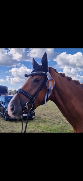 ✨ Stylish Young Dressage Horse with Excellent Character for Sale ✨ For sale is an expressive 4-year-old chestnut mare with outstanding potential for dressage. Breed: Hanoverian Color: Chestnut Height: approximately 1.74 m (17.1 hh) Age: 4 years Pedigree: Sezuan - Fürst Romancier Training: at the level of Dressage Horse A, progressing towards Dressage Horse L Gaits: all three gaits are equally well-developed and balanced Temperament: completely honest, nervously steady, human-oriented, and straightforward in daily handling This young horse impresses with her elegant appearance, lovely temperament, and talent under saddle. She consistently shows willingness to perform and learn – ideal qualities for a successful future in the dressage arena. She is currently highly placed in A-level dressage competitions. Whether an ambitious amateur or a professional rider – this horse has everything one could wish for in her further training. Directly from the breeder. A video can be sent upon request. Location: 29336 Nienhagen