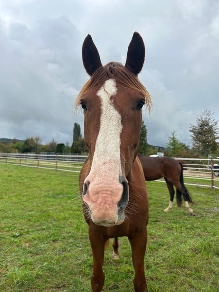 Witam, Na sprzedaż wystawiam moją 5-letnią klacz Je Suis Jolie, córkę Janeiro Platinum – wygląd w stylu Fürsten. Kupiłem ją jako źrebię na aukcji Hannoveraner. Niestety, Jolie nie może się jak dotąd rozwinąć w potencjalnego młodego konia, którego planowałem. Została poddana jazdom próbny i miała przejść badanie SLP. Wykonano również artroskopię, podczas której zdiagnozowano złamanie Birkelanda, które do tej pory nie powodowało żadnych objawów kulawizny. Aby sprzedaż była korzystna, miejsce to miało zostać wygojone. Niestety, po zabiegu staw się nie zregenerował. Obecnie Jolie na pastwisku jest zazwyczaj bez kulawizny. Jolie jest spokojną, łagodną klaczą o dobrym charakterze. Jest bardzo przyjazna i odważna. Ponieważ obecnie nie planujemy hodowli źrebiąt, oferuję ją jako klacz hodowlana lub konia do towarzystwa. Rozważymy wymianę na konia dziecięcego o wzroście od 1,25 do 1,48 m.