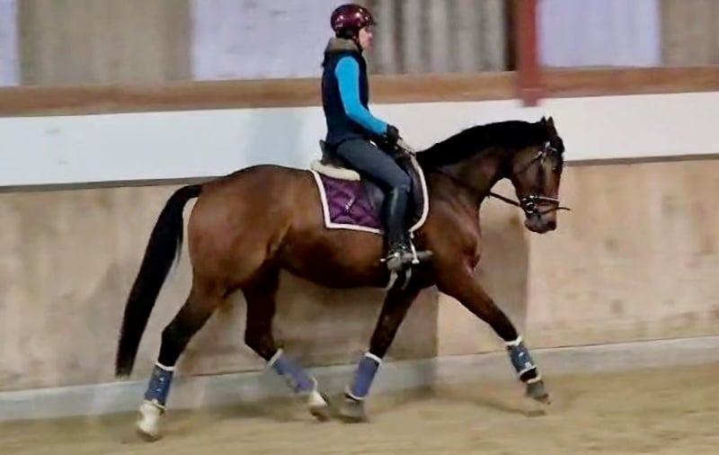 Im Auftrag des Züchters wird hier eine superliebe und sehr hübsche braune Stute mit top Abstammung (Fusionist x Lauries Crusador) angeboten. Sie ist mit derzeit 1,65 m ein ideales Damenpferd. Aufgrund von Bestandsverkleinerung sehr günstig abzugeben. Die Stute ist angeritten. Sie ist brav unter dem Sattel, dennoch aufgrund ihres Ausbildungsstandes kein Anfänger- oder Kinderpferd. Sie hat einen guten Röntgen Tüv. Hauptsächlich ist sie aufgrund ihrer Abstammung für die Dressur geeignet, sie stellt sich aber auch beim Freispringen sehr geschickt an. Für die Zucht wäre sie ebenfalls sehr gut geeignet, da sie eine sehr interessante Abstammung hat ( Vater Fusionist: Franklin- Ehrentanz- Florestan). Aus ihrer Mutter stammt auch eine Stute, die 2022 Preisspitze auf der Vedener Auktion wurde! Schnell sein lohnt sich...eine tolle Stute mit vielen Möglichkeiten zum kleineren Preis!!! VHB 12.900 Euro