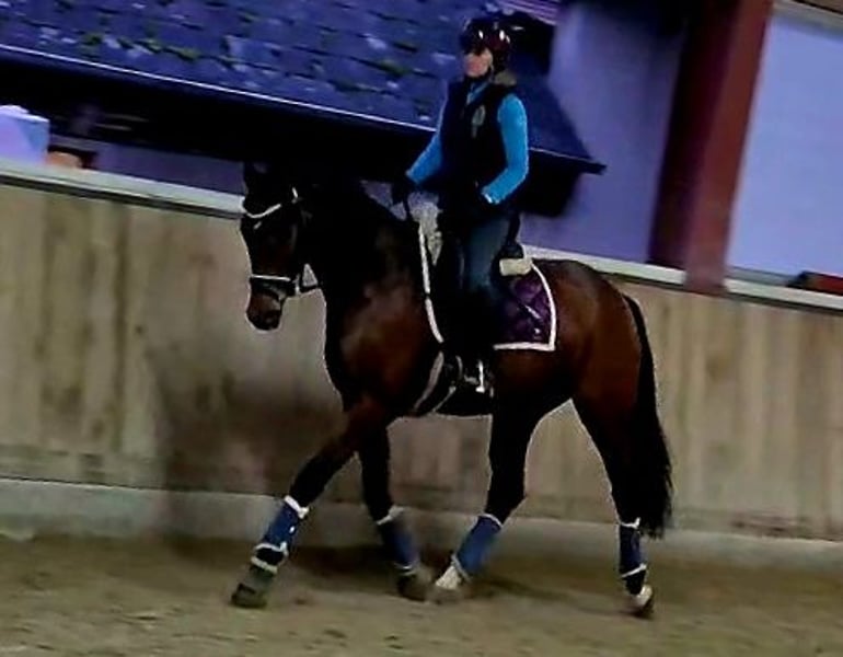 Por encargo del criador, se ofrece una yegua marrón muy dulce y muy bonita, con una genealogía excelente (Fusionist x Lauries Crusador). Con una altura actual de 1,65 m, es una yegua ideal para damas. Debido a una reducción de la población, se ofrece a un precio muy asequible. La yegua está montada y es muy tranquila bajo la silla, aunque debido a su nivel de entrenamiento, no es adecuada para principiantes o niños. Cuenta con un informe radiológico favorable. Principalmente, por su linaje, es adecuada para la doma, pero también demuestra mucha destreza en el salto libre. Además, es muy apta para la cría, ya que tiene una genealogía muy interesante (padre Fusionist: Franklin – Ehrentanz – Florestan). De su madre también proviene una yegua que en 2022 fue la mejor en la subasta de Vedene. ¡No pierdas tiempo! Una yegua fantástica con muchas posibilidades, ¡a un precio reducido!